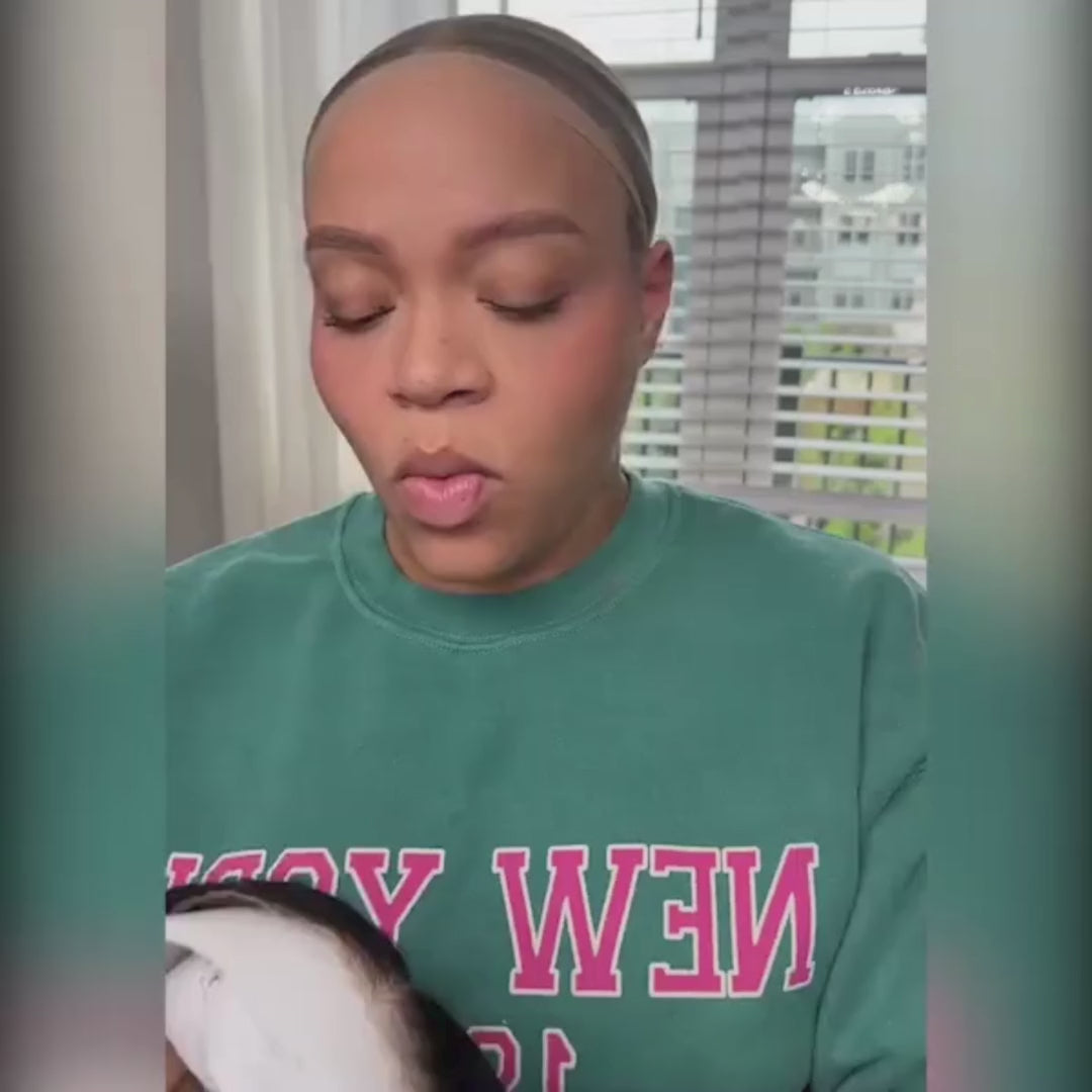A peruca sem cola Nadya's Hair é uma peruca com renda pré-cortada, nós pré-branqueados, linha do cabelo pré-depilada, incluindo elásticos ajustáveis, que é fácil de instalar e de descolar.
